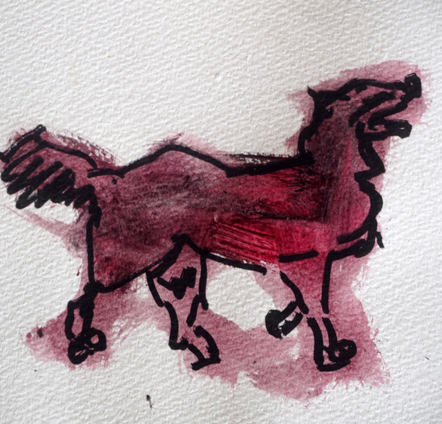 画用紙に水彩絵の具とインクで、エスキースから始めることとしました。タイトルは連続して「妖かしの里」です。