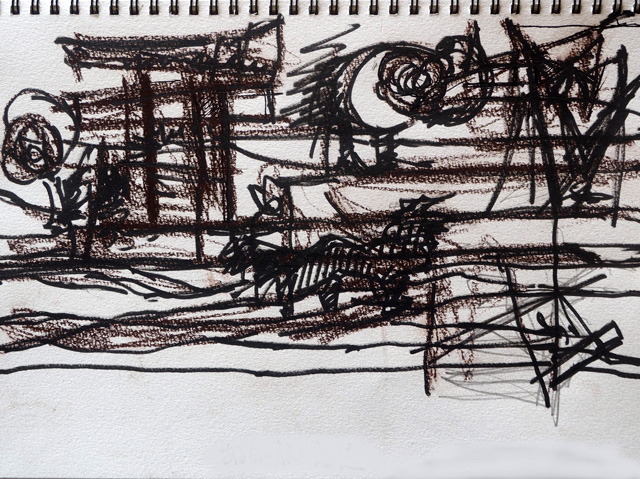 先日に出かけた旅で訪れた地域、その地の一時の捉えて描いた作品です。その場所とは、決して著名な名勝地、観光地ではなく、決して歴史的意味付けのある場所でもないのでありますが、とても印象的な一瞬をこの目に、我が目に、焼き付けておきたかった場所だったのでありました。